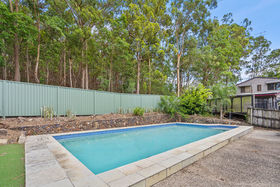 - Large swimming pool with bushland backdrop